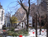 雑司ヶ谷の鬼子母神でも境内の大きな常緑樹の木々がたくさん折れて、後片付けにてんてこ舞いです。新江戸若公園では雪害で閉園になっているようです。
